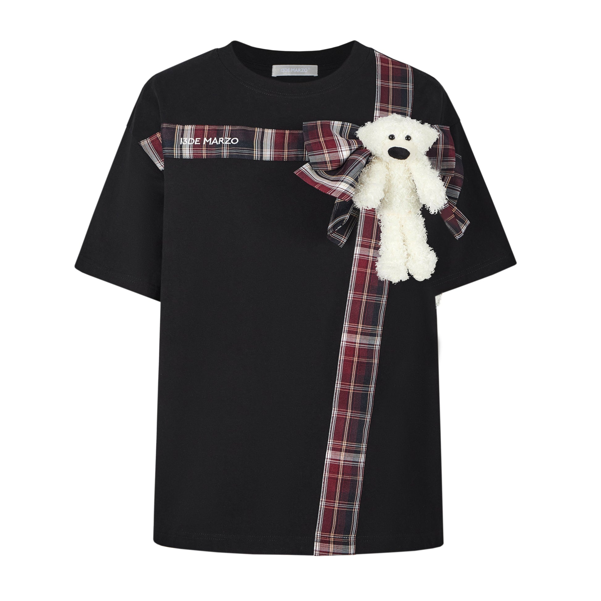 13DE MARZO Bear Gift Bow T-Shirt Black