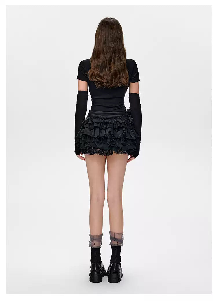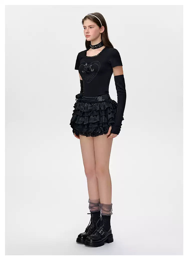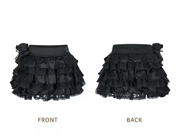 13DE MARZO Bear Lacy Bud Skirt Black