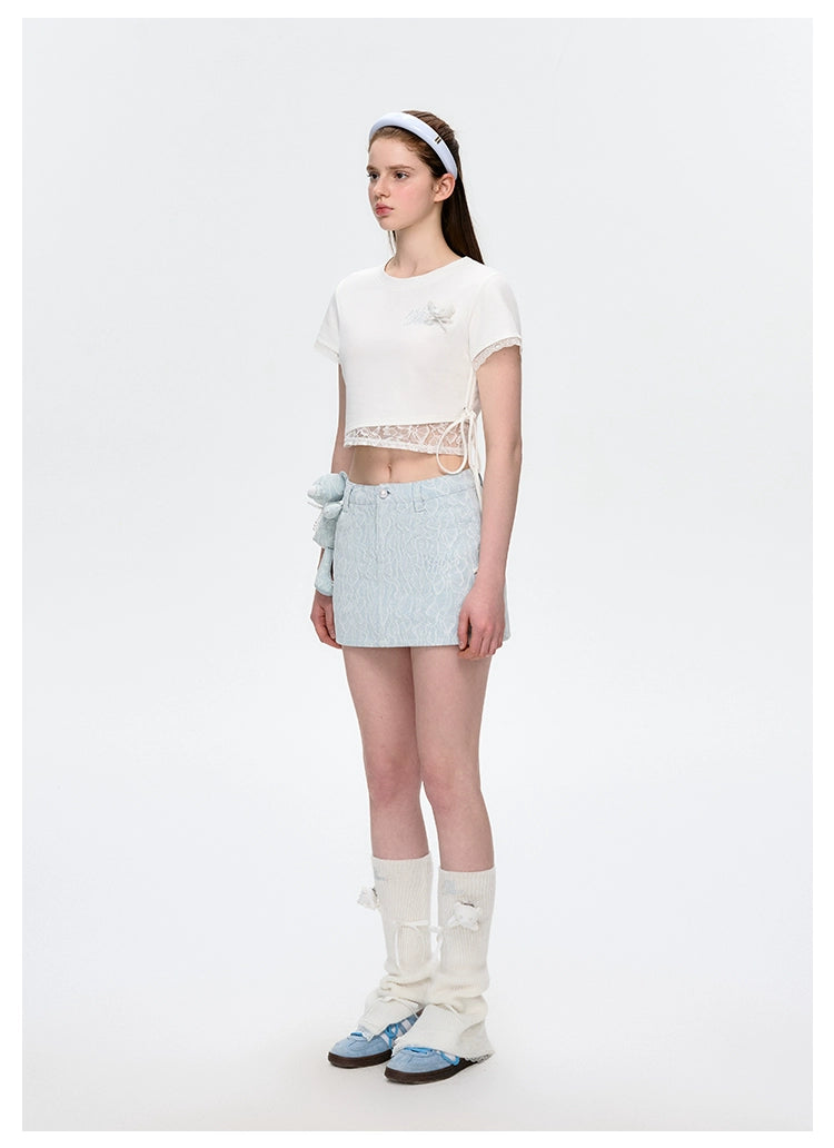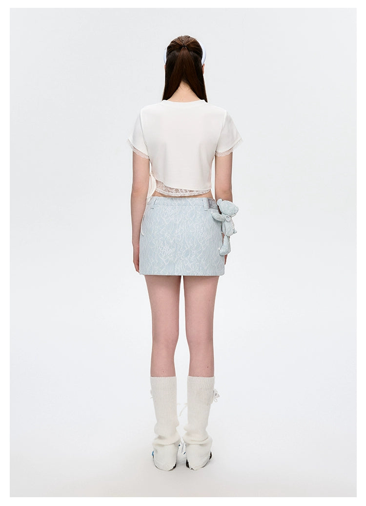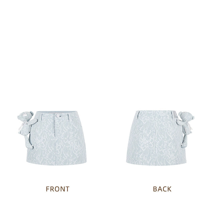 13DE MARZO Bear Lacy Denim Skirt Blue
