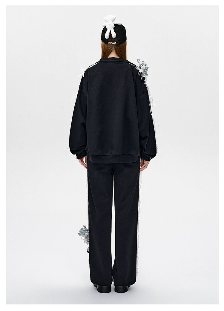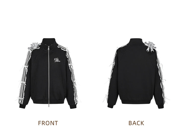 13DE MARZO Bear Lacy Knot Zip Sweatshirt