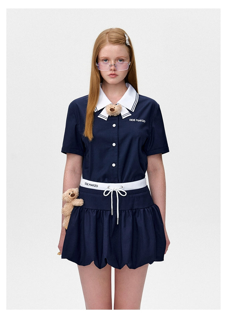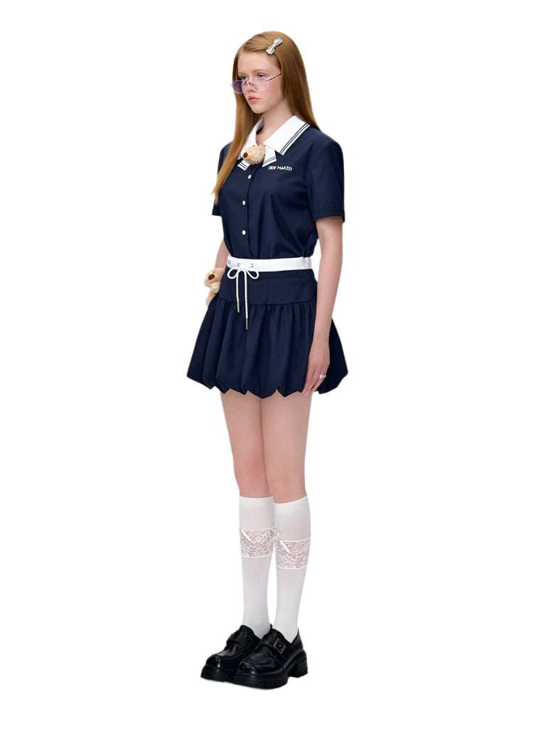 13DE MARZO Bear Sailor Bud Skirt Blue