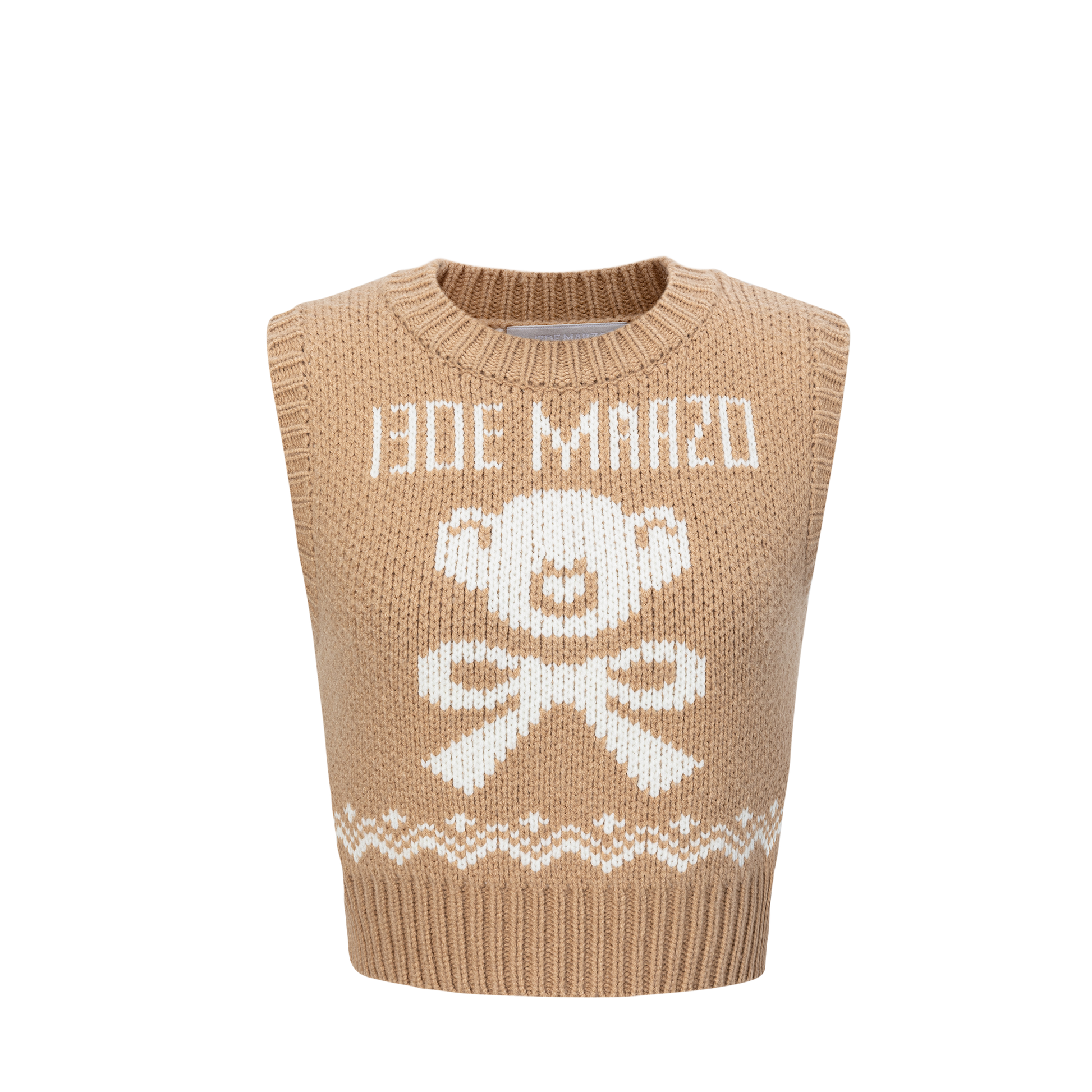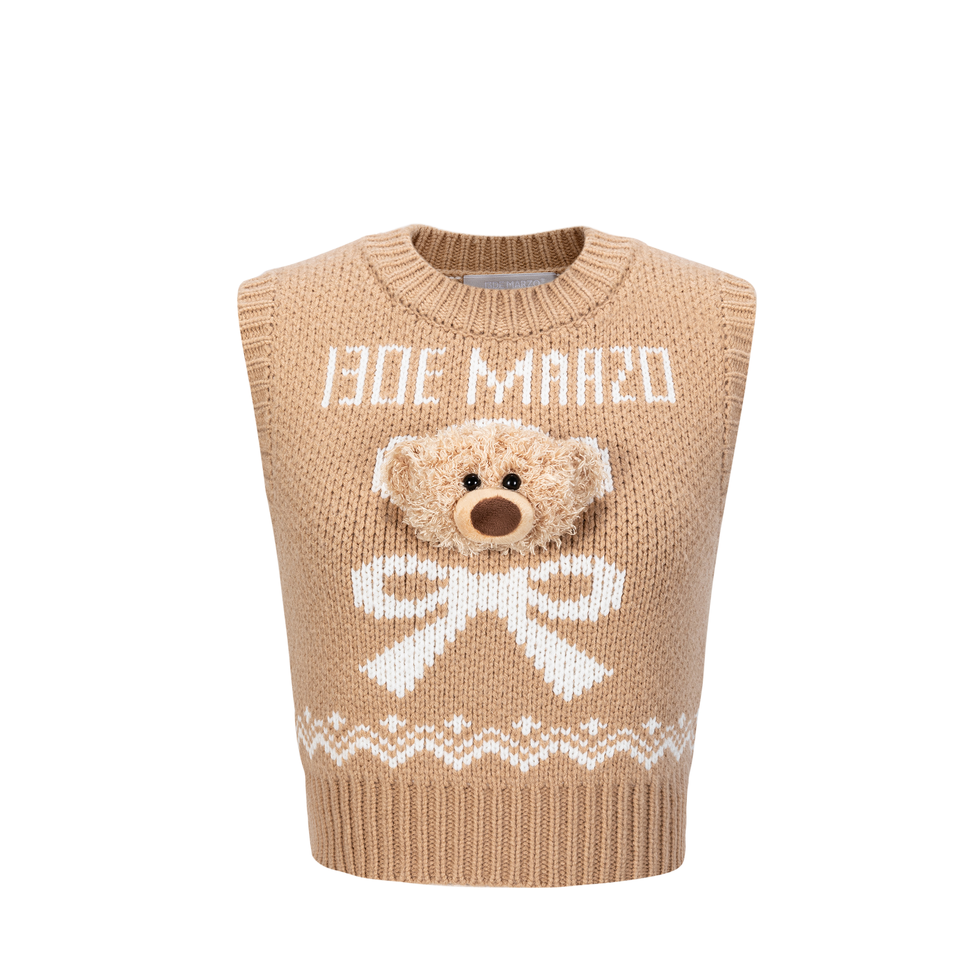 13DE MARZO Fair Isle Bear Knit Vest Khaki
