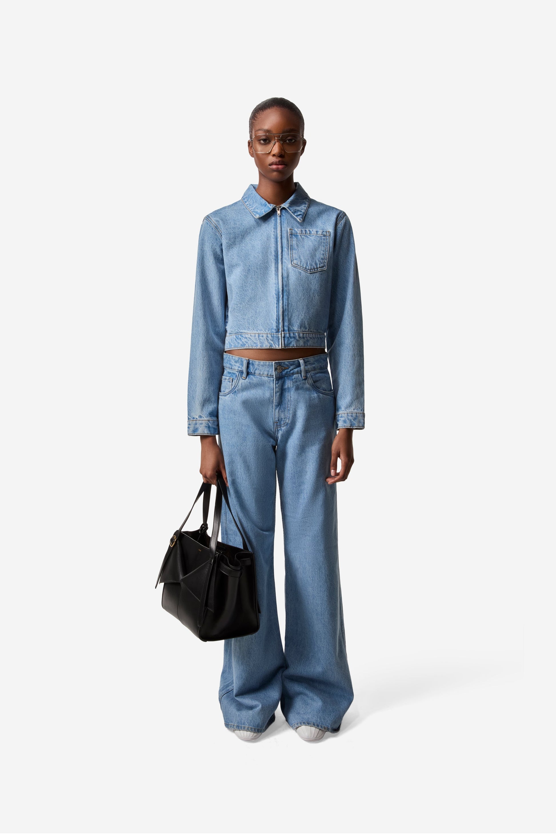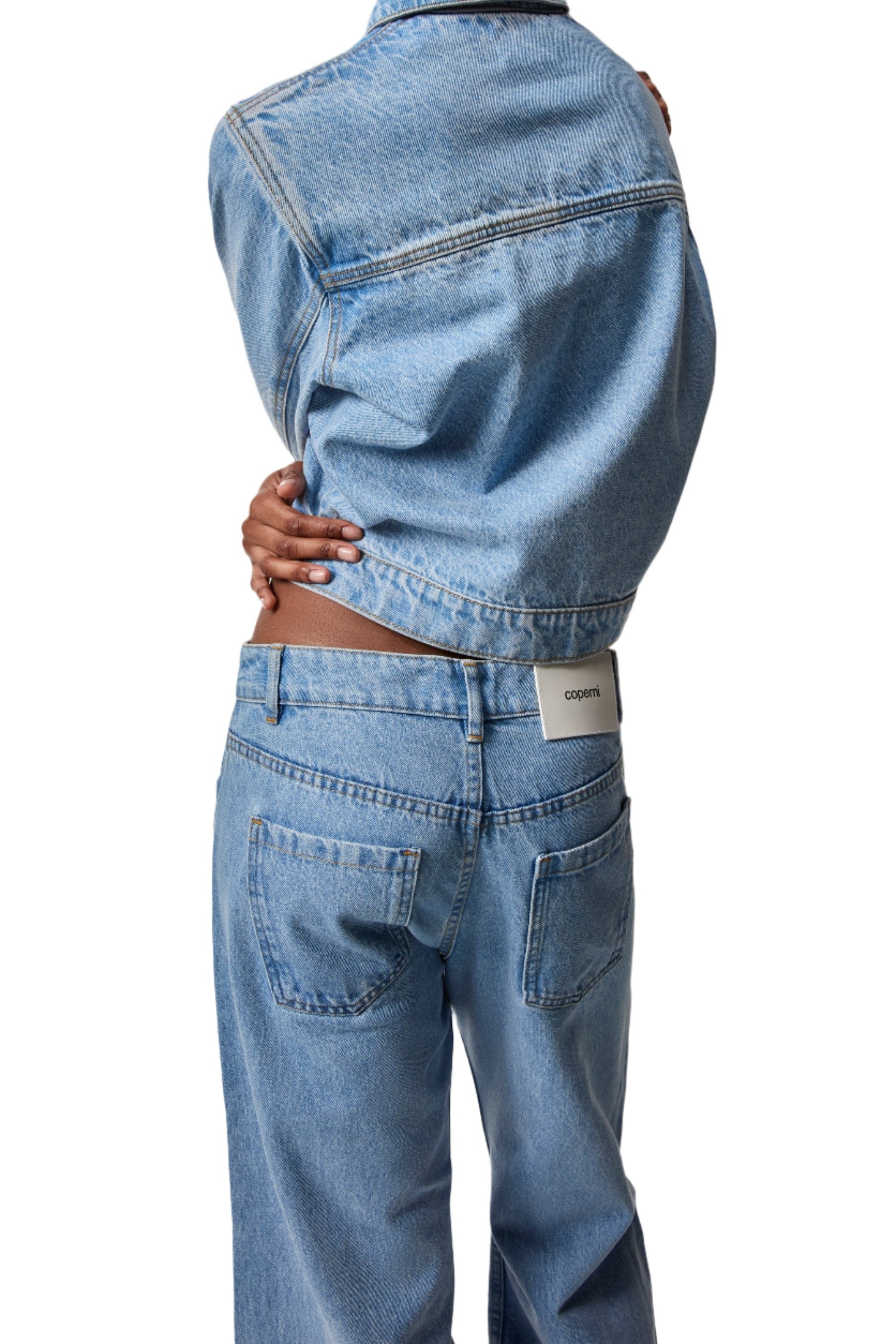 Faded for a retro look with a whiskered front, Coperni's washed blue denim jeans are crafted from 100% cotton and designed to sit comfortably at the hip. Their generous wide-leg shape and extra-long cut lend them a 70s style that effortlessly flatters and elongates the silhouette.