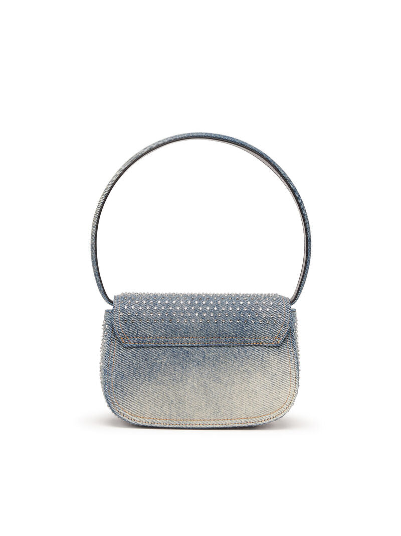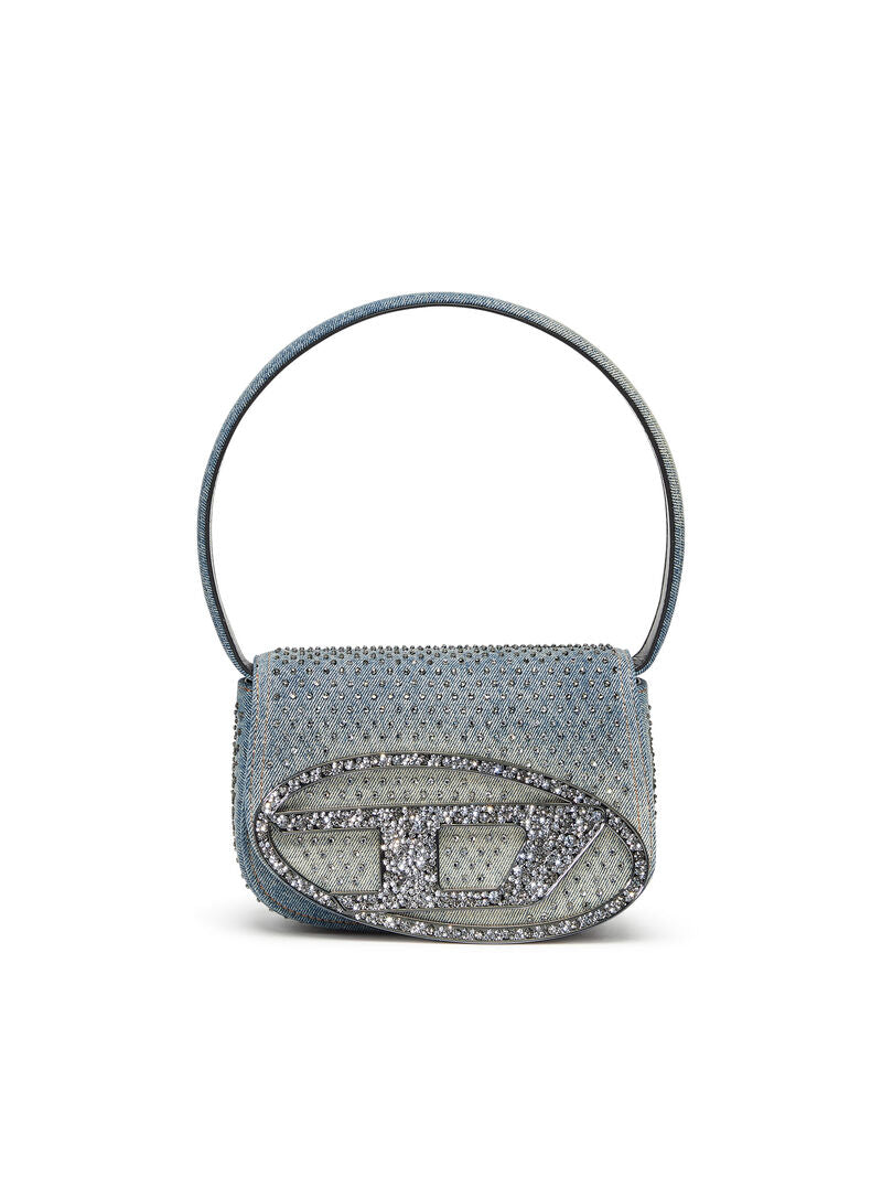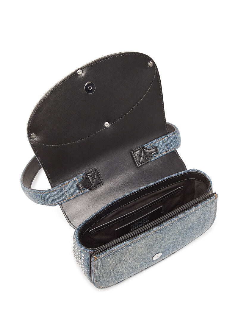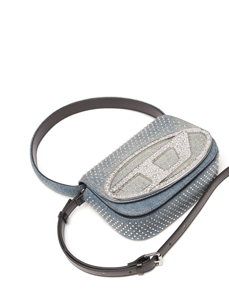 Combining Diesel's denim expertise with a highly recognisable shape, this women's bag is crafted from solarised denim, featuring a distinctive sun-faded effect. The iconic half-moon silhouette is adorned with all-over rhinestones on the flap, and crystal-encrusted Oval D hardware.