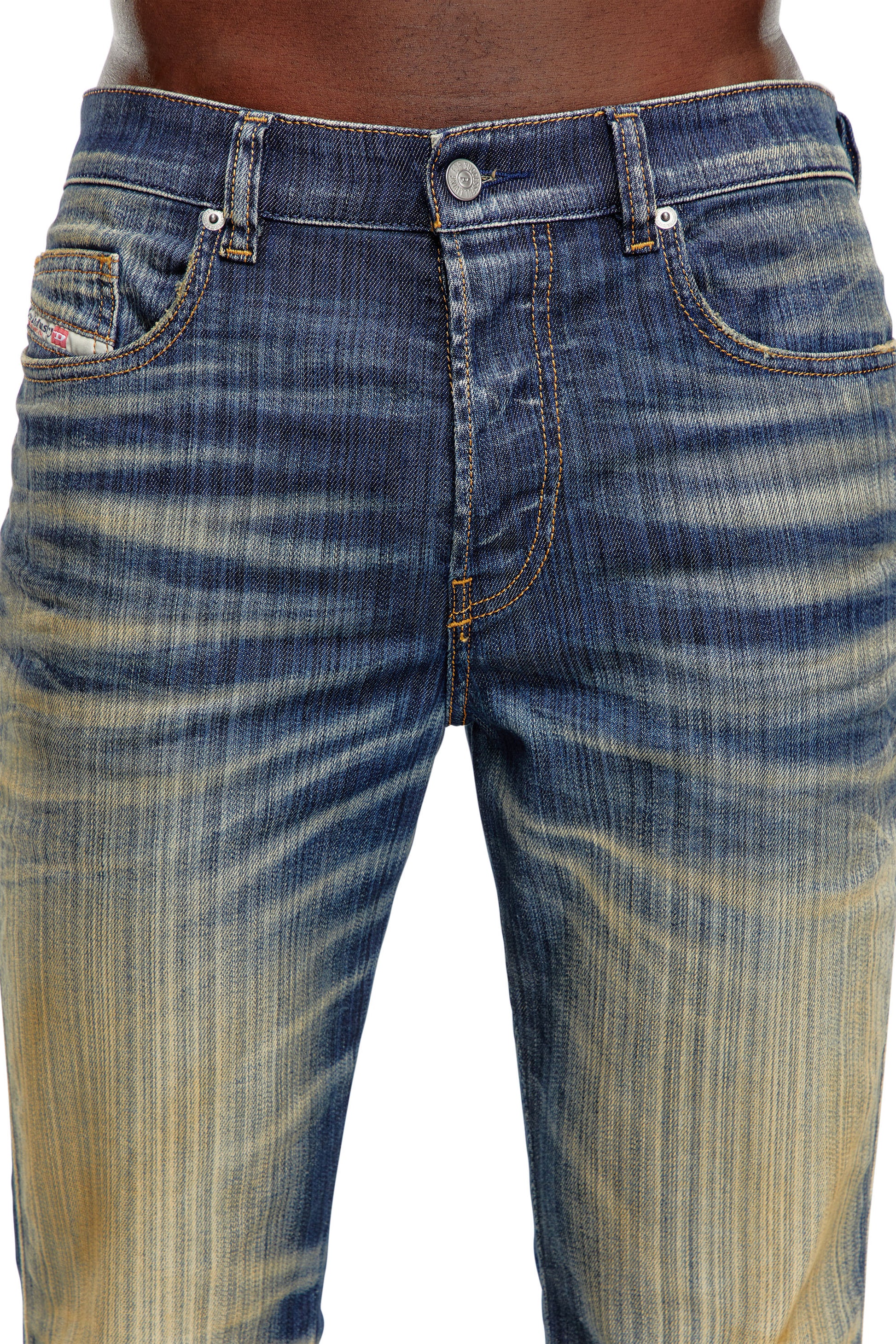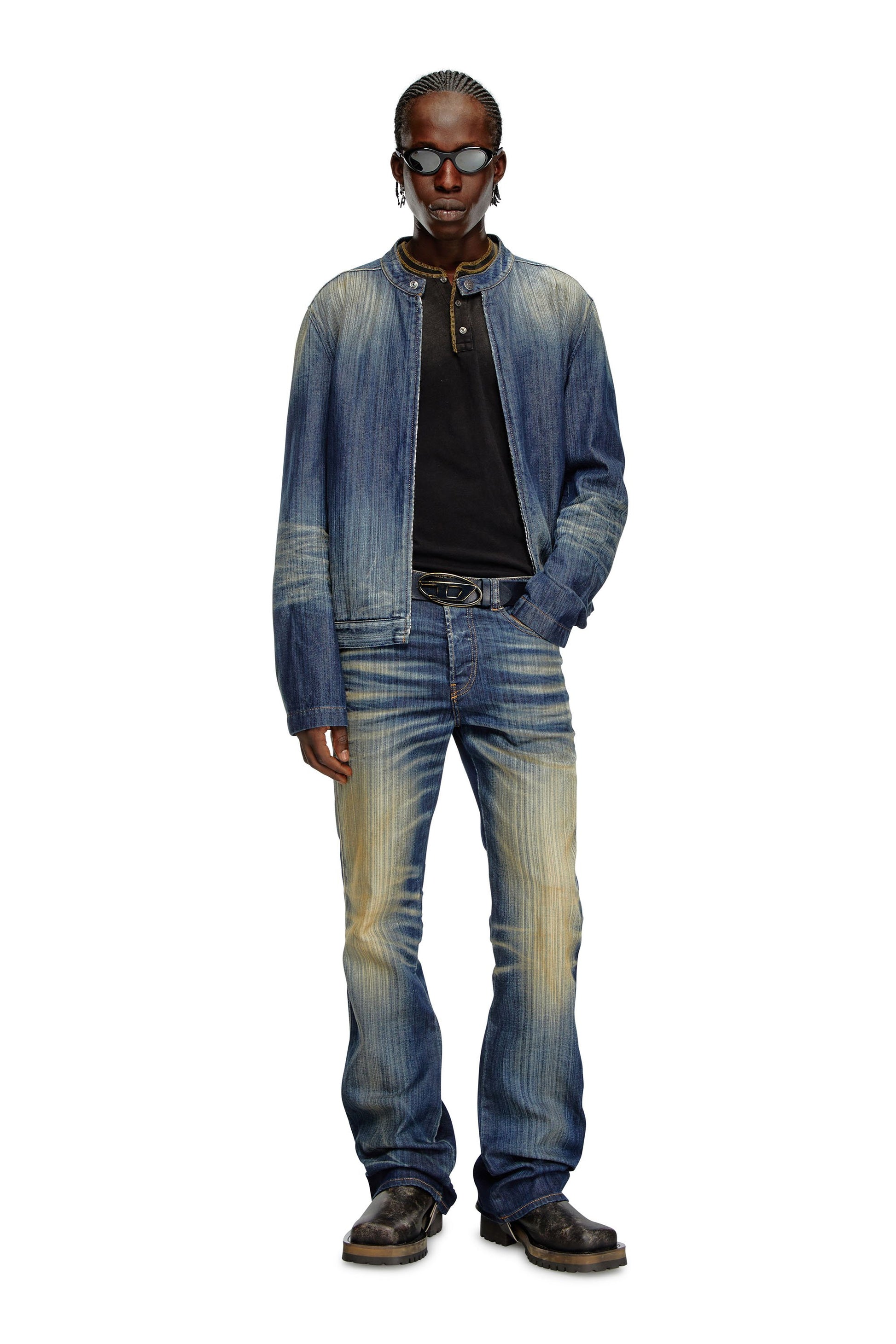 Crafted using regenerative cotton, this comfort denim showcases an exclusive "thunder" effect. The dark blue base is washed and sprayed to create a contrasting streaky look, enriched with dirt effects for a dusty, used finish.