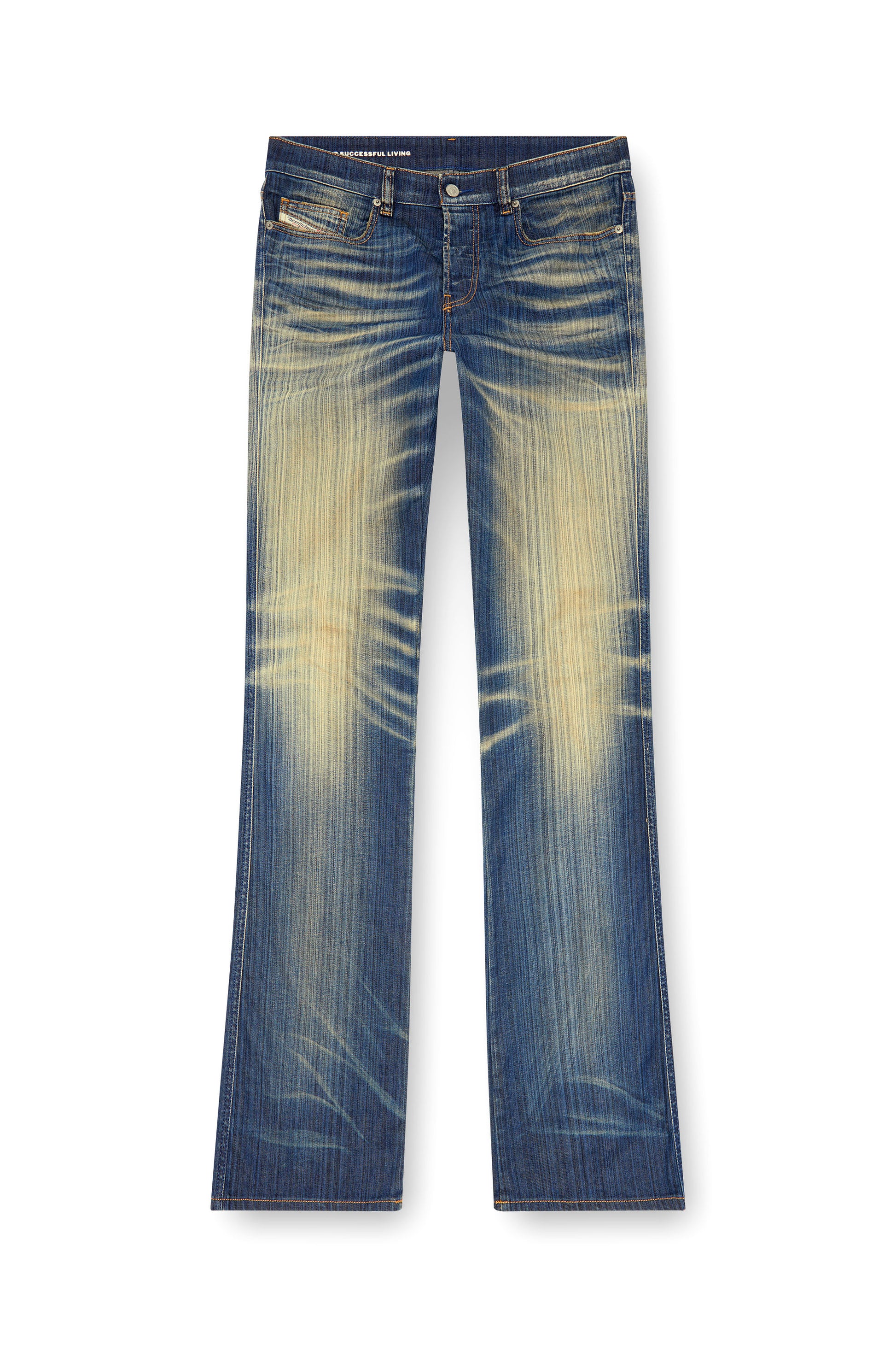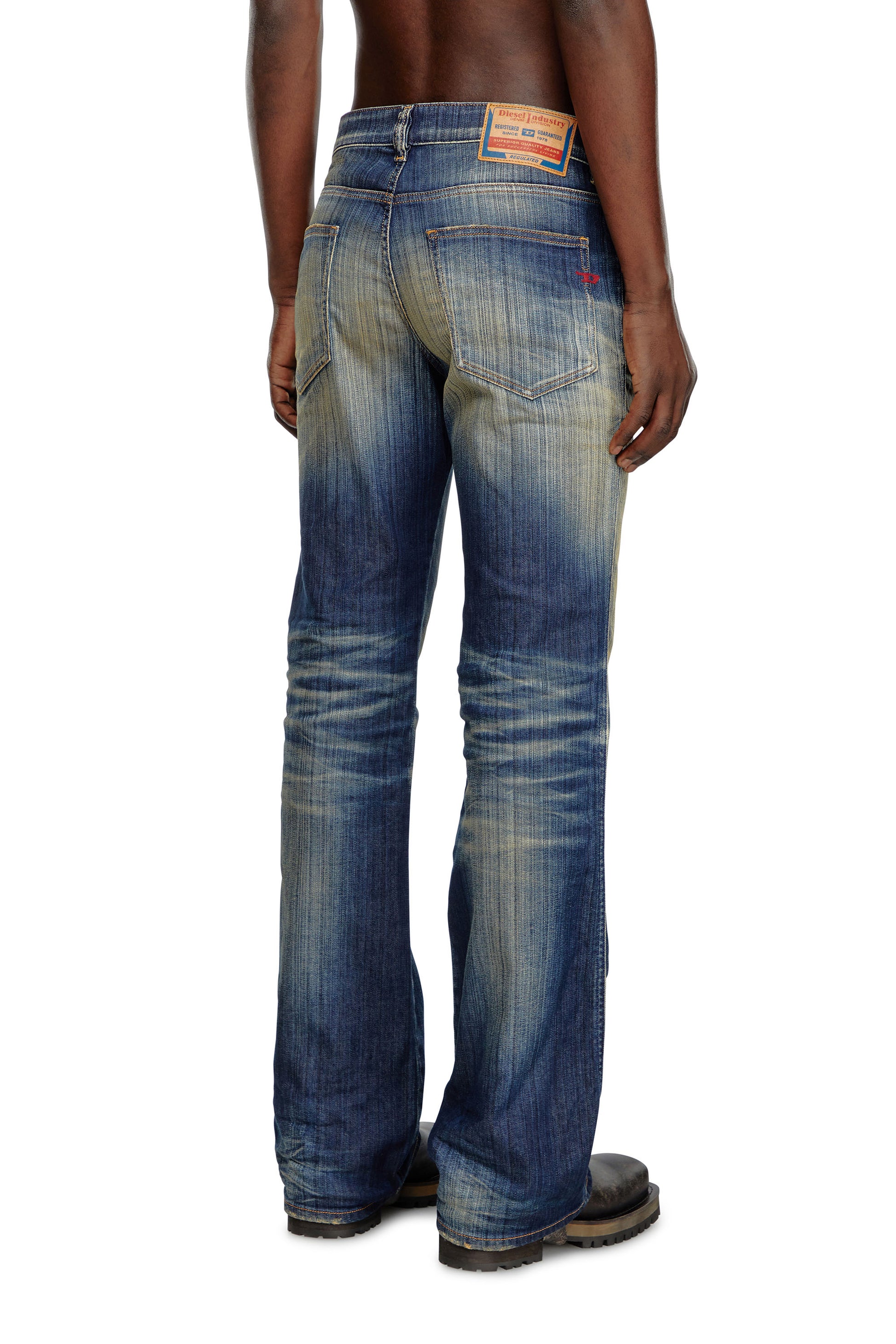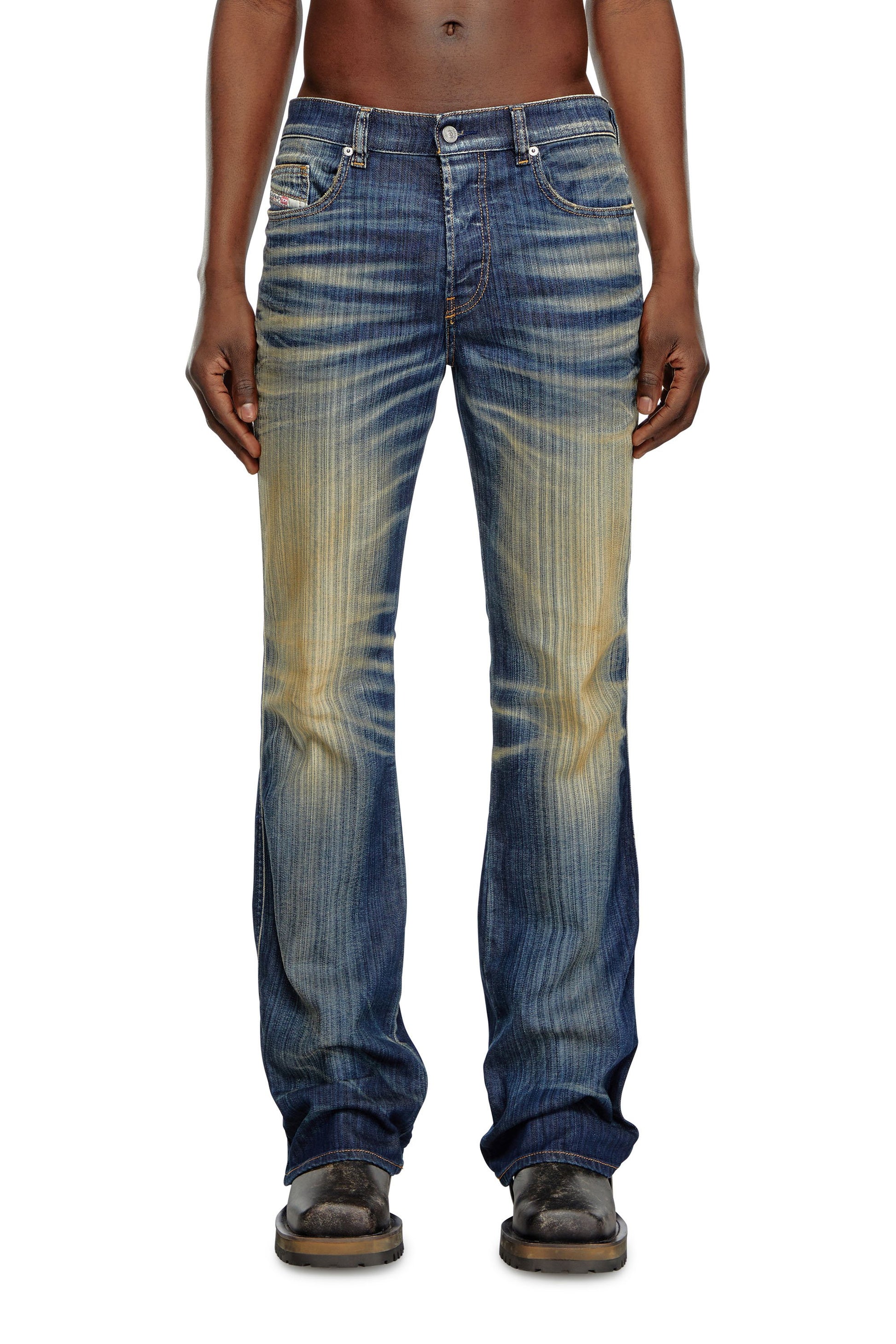 Slim style with a regular waist and bootcut leg, desgined with a slightly wider hem for a modern twist. Detailed with an embroidered D. Fastens with a button fly.