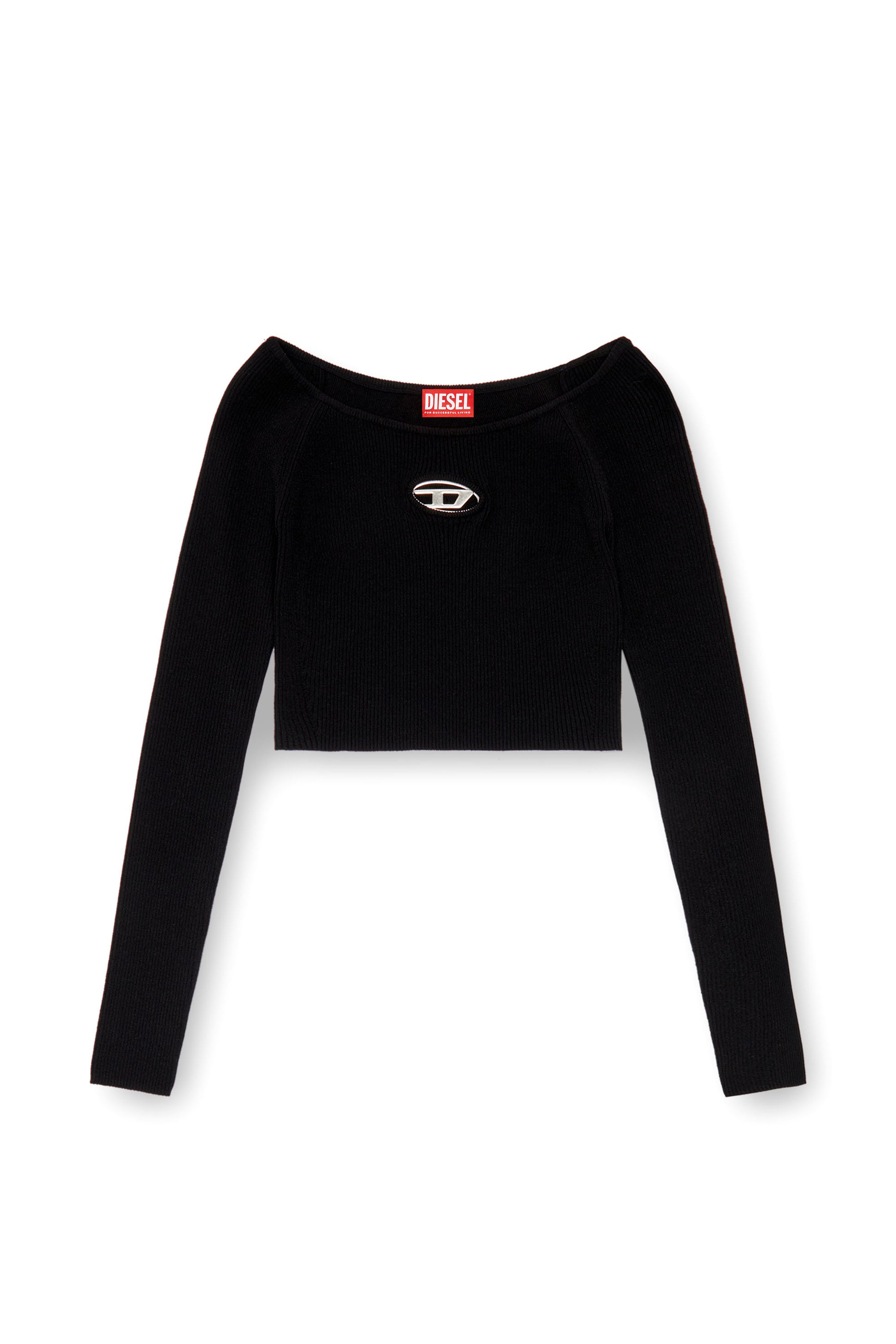 This women’s long-sleeve top is designed with a metal Oval D plaque nestled into the chest cut-out. Made from soft ribbed knit containing viscose from responsibly managed forests, it has an off-the-shoulder neckline and a slim fit.