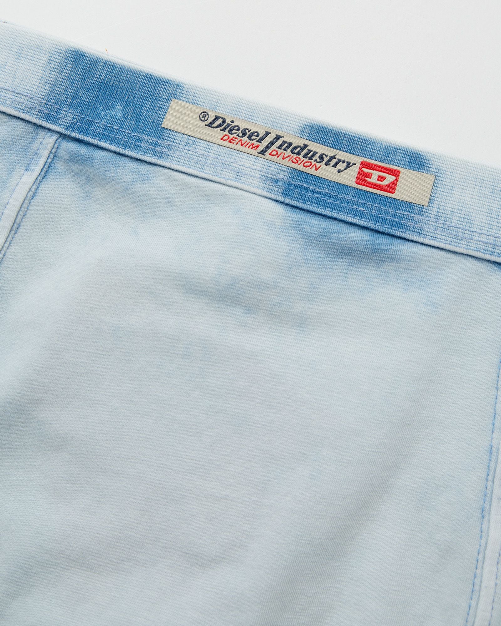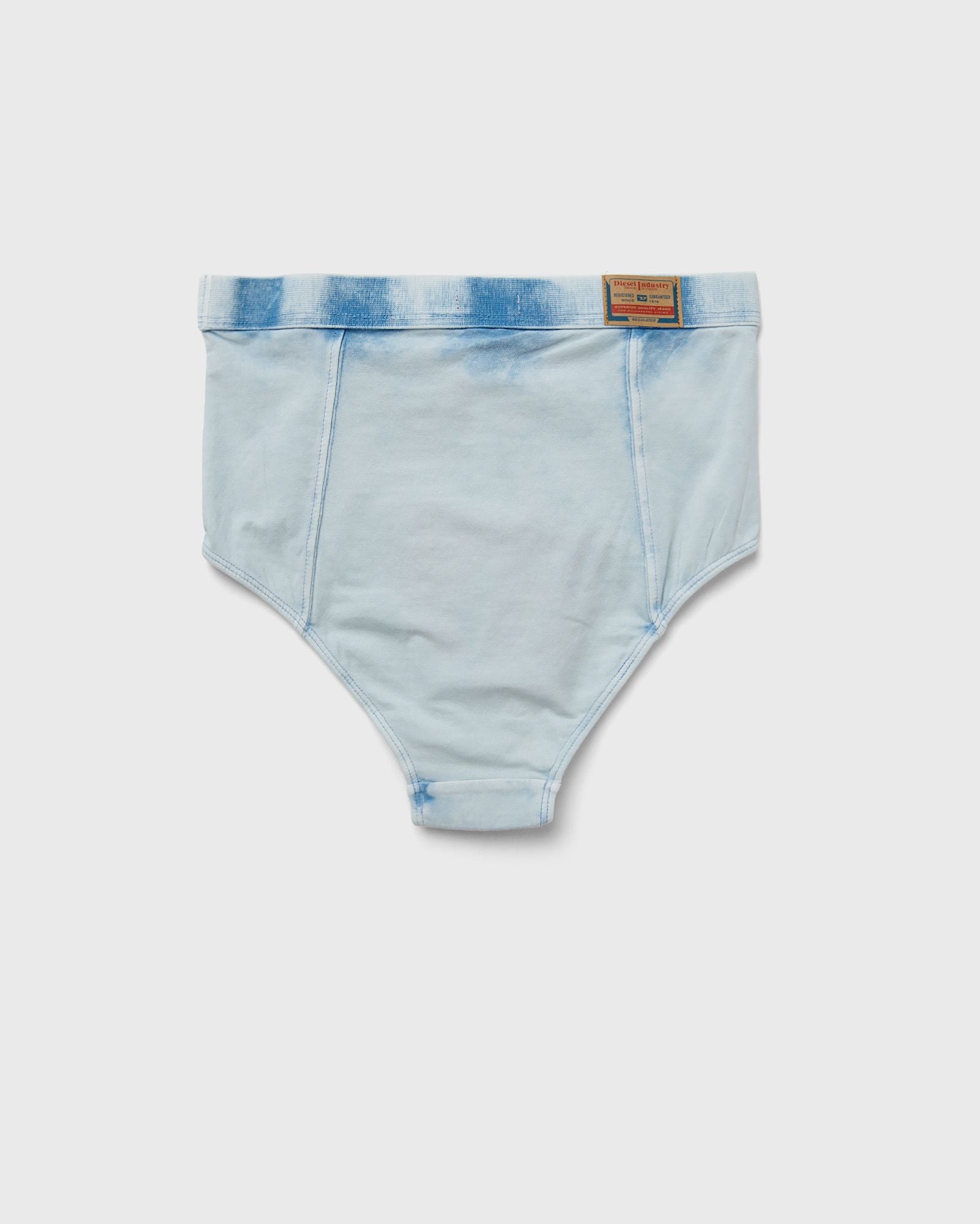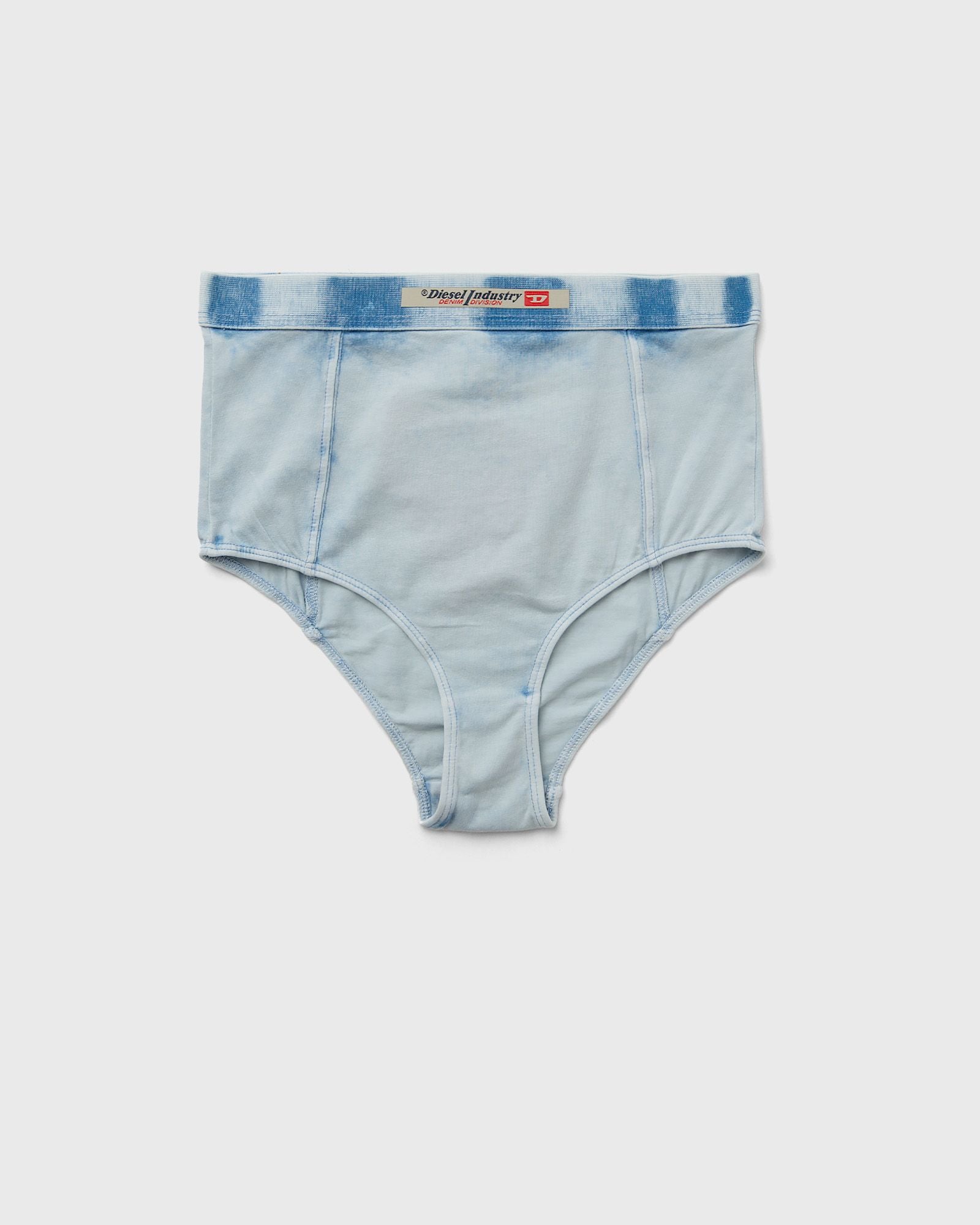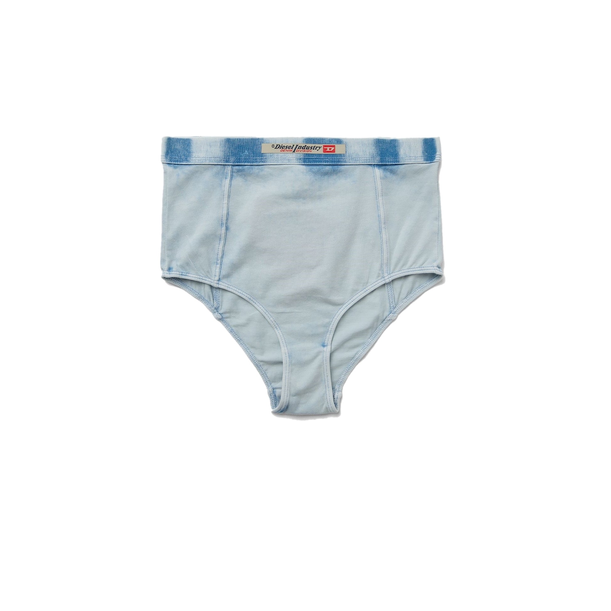 The UFPN-DRONA by Diesel are briefs for women made from stretch cotton denim in a blue wash. They have a covering hipster fit with an elastic waistband and a Diesel industry label on the front.